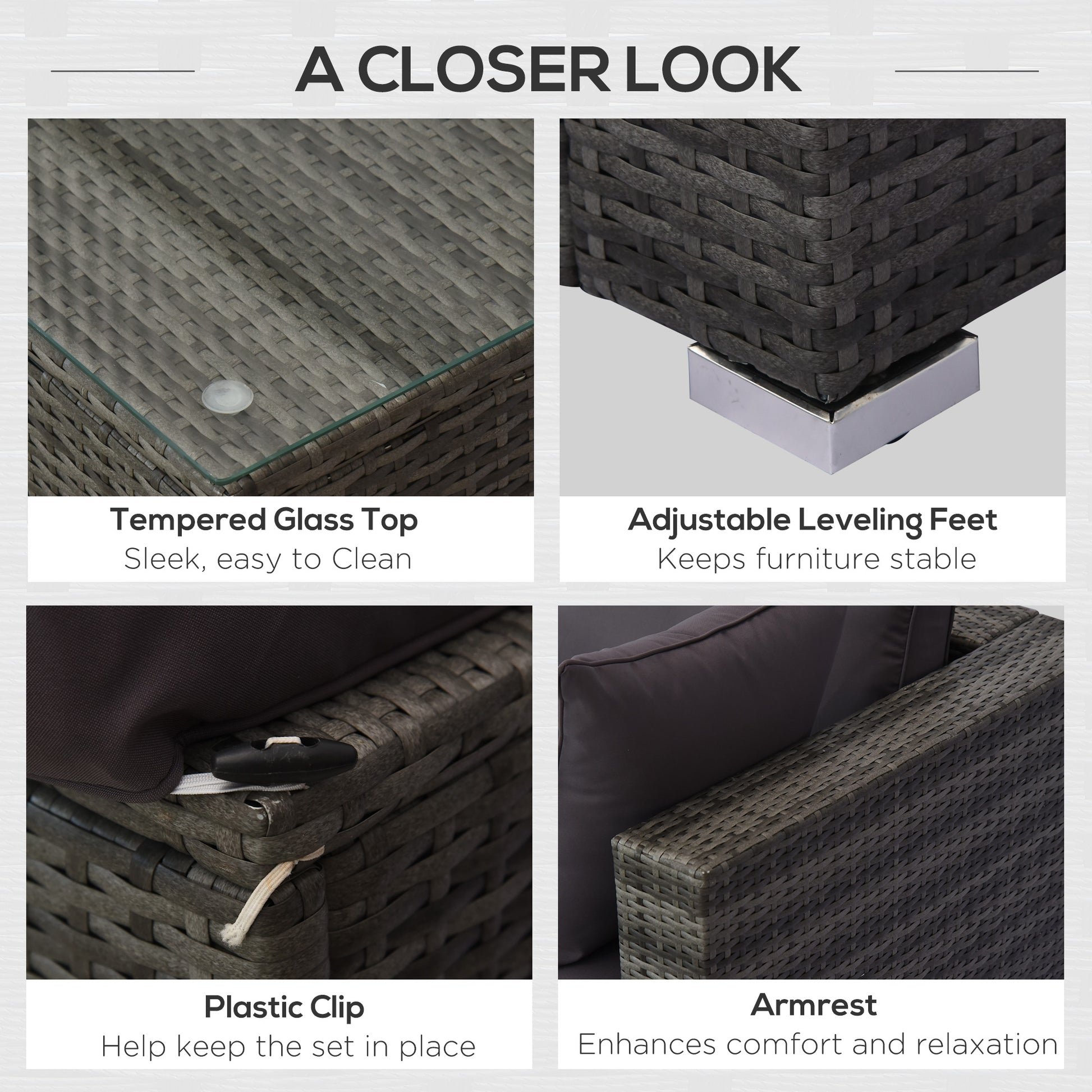 Créez un espace de vie extérieur accueillant avec cet ensemble sectionnel polyvalent de 5 pièces. Doté d'une construction en rotin synthétique (PE) durable de couleur anthracite, son design modulaire s'adapte à toute configuration de patio. Il comprend un canapé spacieux, un ottoman et une table assortie – le tout agrémenté de coussins moelleux et d'oreillers décoratifs pour le confort et le style. Les matériaux résistants aux intempéries supportent les éléments tout en conservant leur apparence élégante. Idéal pour recevoir ou se détendre, cet ensemble complet transforme votre espace extérieur en un havre de paix sophistiqué.